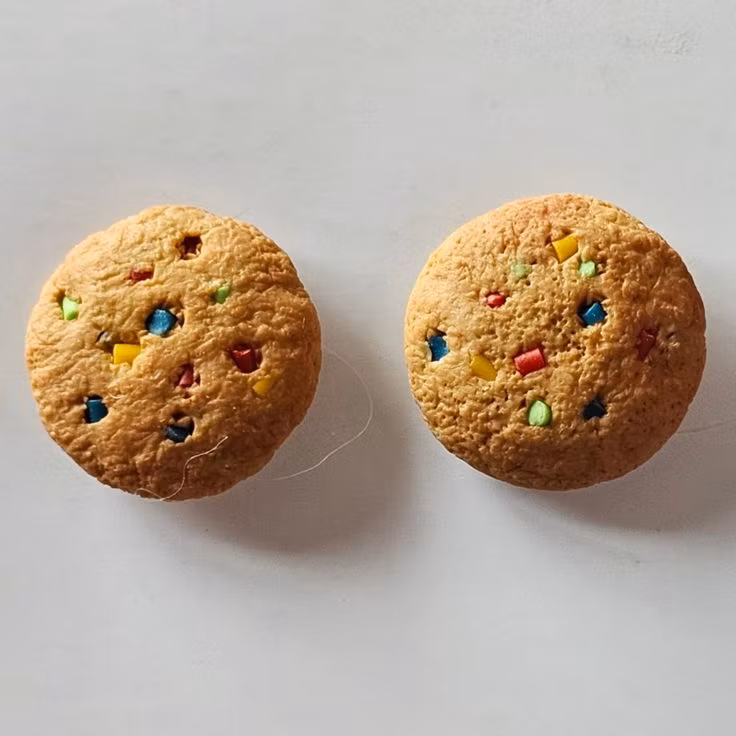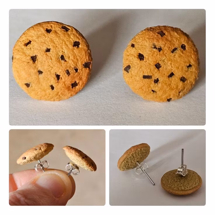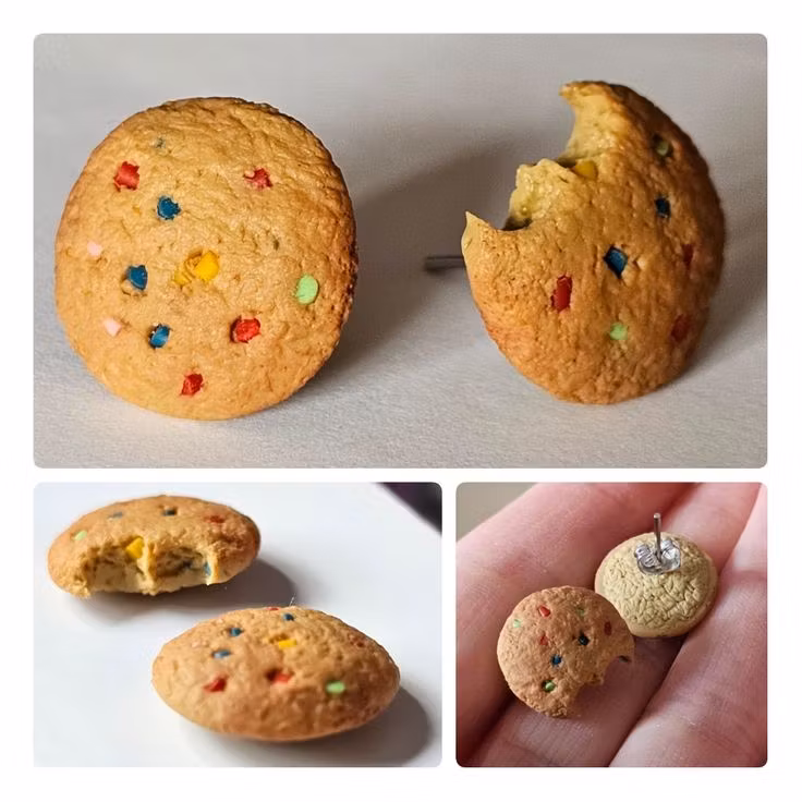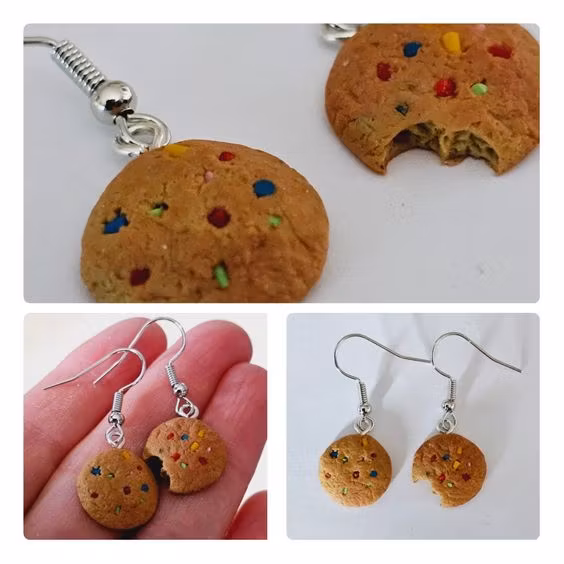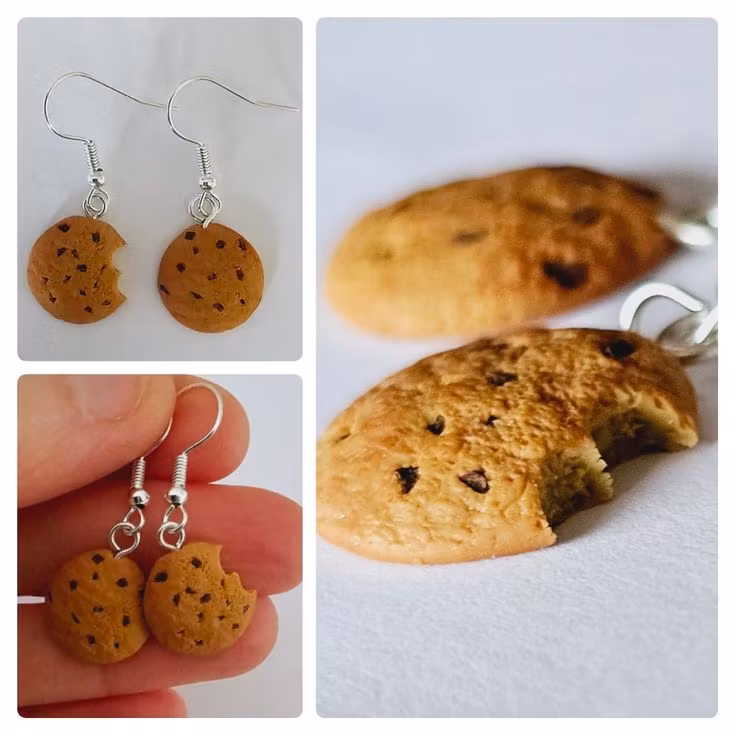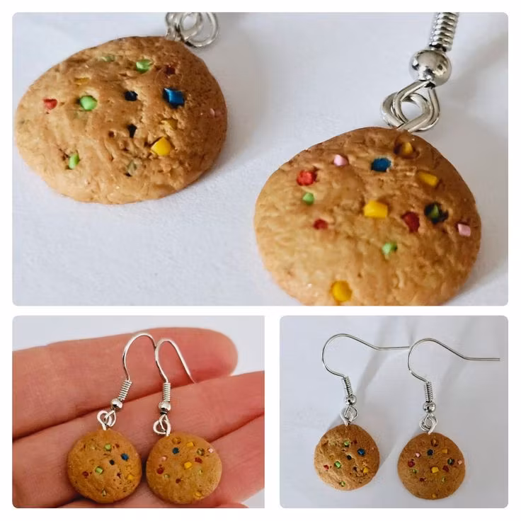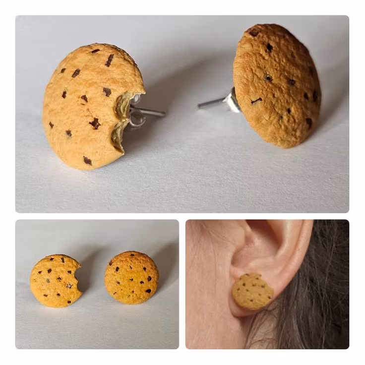 Örhängen som föreställer små kakor. De finns med olika "smaker", dels med choklad och dels med godis i olika färger.