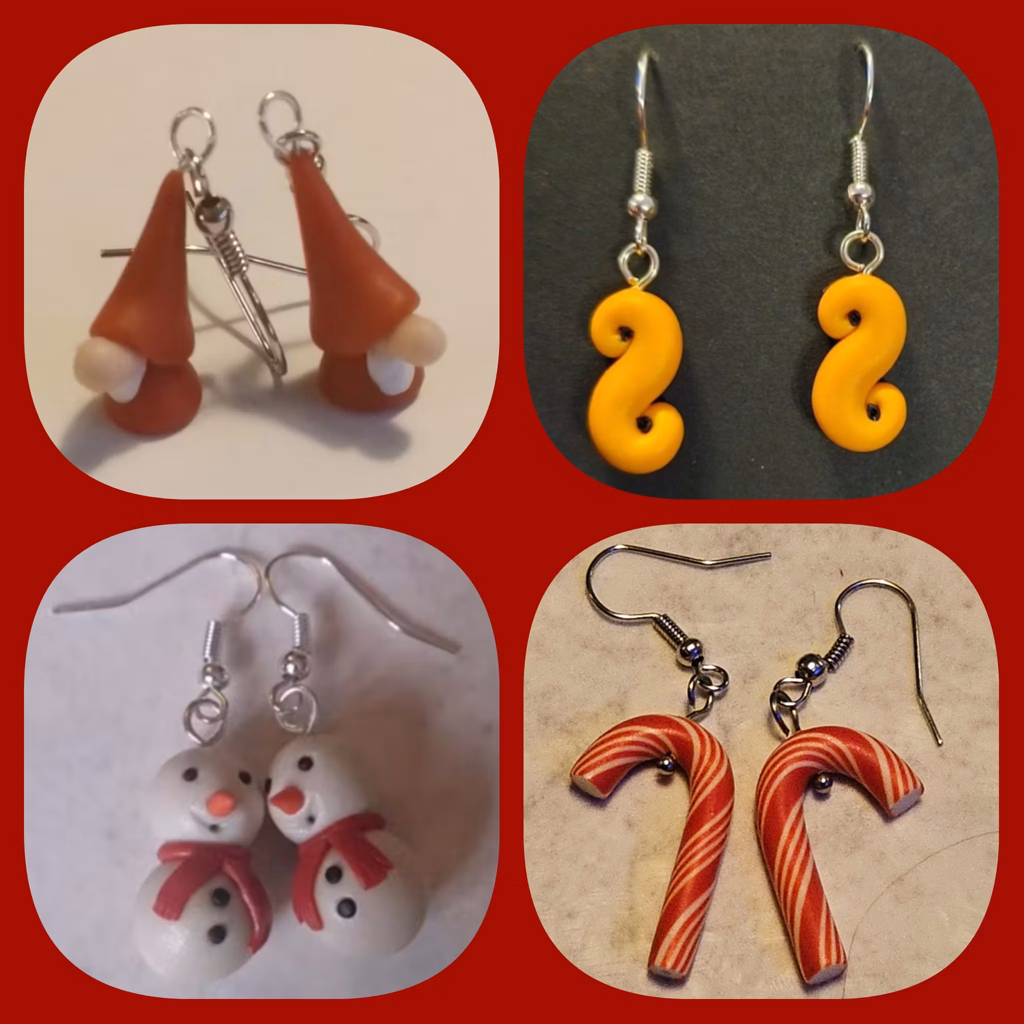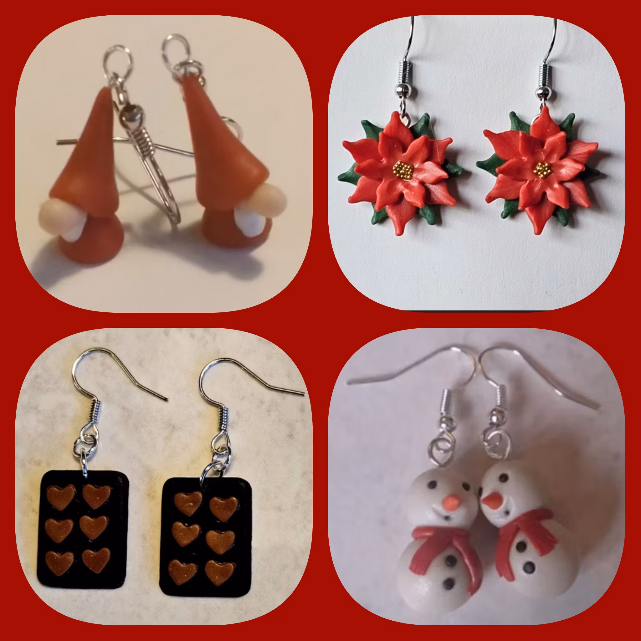 Köp ett set med fyra par örhängen med vinter/jultema.